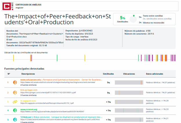 (es) El Impacto de la retroalimentación entre pares en la producción oral de los estudiantes.