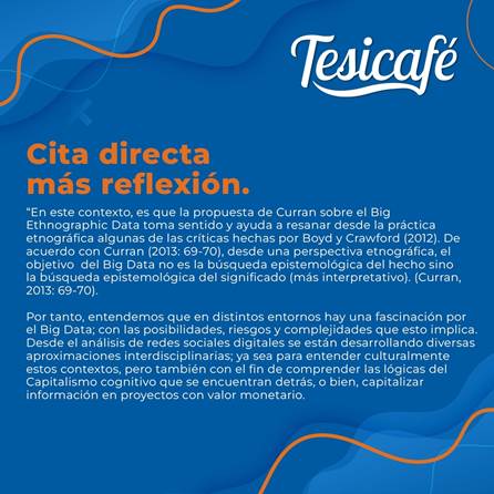En este sentido, como parte del rea de investigaci n de Tesicaf , se realizan entrevistas y encuestas en l nea o v a telef nica para identificar necesidades emocionales y epist micas de tesistas. Por otro lado, a medida que avanzan las sesiones se les hace a los tesistas un acompa amiento situado desde las y los profesores de Tesicaf y el rea de comunicaci n educativa. Se les deja ejercicios puntuales seg n el apartado de tesis en el que se encuentran, rutas metodol gicas y, de requerirse, se les canaliza al rea correspondiente del Tesic logo o se les ofrece diferentes herramientas extras (como masterclass). Dado que, dentro del perfil de tesistas que llegan a Tesicaf , se contempla que los principales problemas que enfrentan son: la falta de claridad en la estructura de su investigaci n, problemas para delimitar el tema, dificultades con la redacci n acad mica y el manejo adecuado de las fuentes bibliogr ficas (Mijares, comunicaci n personal, julio de 2024). Lo cual, seg n la entrevistada, se traduce en huecos metodol gicos y epistemol gicos ; que se complican cuando influyen factores psicoemocionales, como el sentimiento de abandono por parte de sus asesores o asesoras. Respecto al problema de redacci n, seg n Mijares (comunicaci n personal, julio 2024), esta afecta la integridad acad mica del tesista y aumenta el riesgo de plagio, lo que puede provocar el rechazo del proyecto. Dado que implica no saber usar las citas o generarlas correctamente, copiar y pegar la informaci n sin acreditar, o la dependencia al uso de la Inteligencia artificial. Por lo cual, las y los profesores de Tesicaf est n capacitados mediante el curso MOOC para el uso, detecci n y orientaci n en la tesis; adem s de familiarizarse con los sistemas de citaci n de cada tesista para dar se alamientos, sin juzgar al tesista.