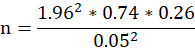El error absoluto utilizado para calcular el tamaño de muestra ha sido del 5%, p del 74%, q del 26% y z es 1,96 a un nivel de confianza del 95%.