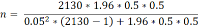 N = Población de 2130 estudiantes