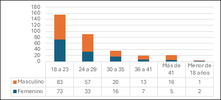 Figura 1: Este perfil demográfico utilizado demuestra la cantidad de personas encuestadas en donde la mayor cantidad comprende un grupo etario de 18 a 29 años siendo un gran porcentaje de ellos hombres.