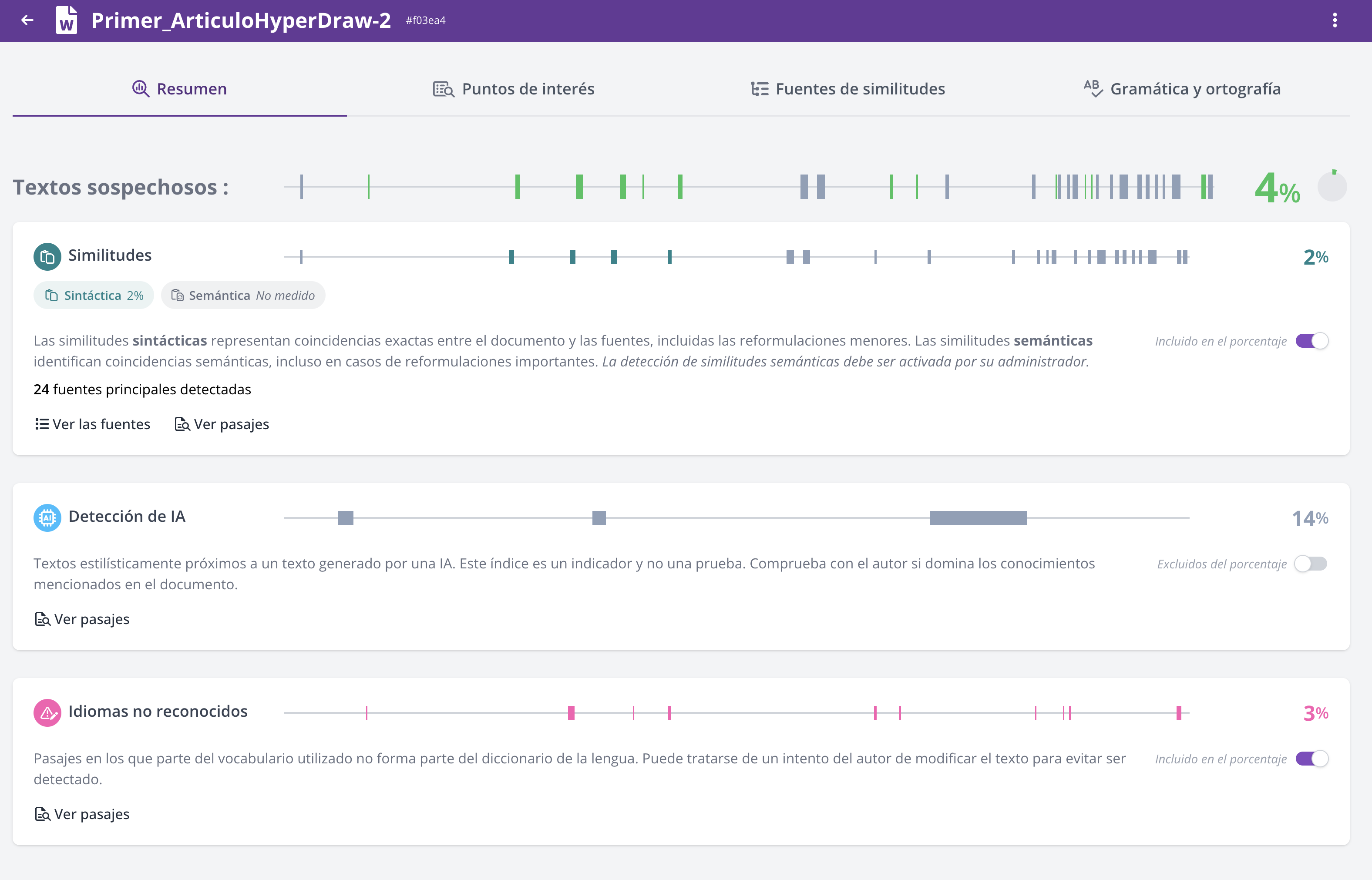 Para la elaboración del documento se contrastó un 14% de Inteligencia Artificial (IA) para la adecuación de datos en formato de la revista.