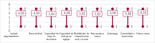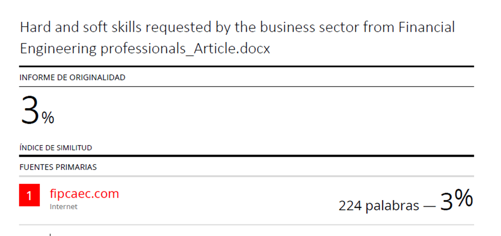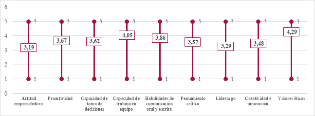 The soft skills most appreciated by banks are: Ethical values, oral and written communication skills and proactivity. Regarding the evaluation of the soft skills of Financial Engineers, it is observed that entrepreneurs rate them on average as important. Skills such as ethical values, teamwork skills, oral and written communication skills, proactivity, critical thinking, creativity and innovation, leadership, and entrepreneurial attitude are especially highlighted.
