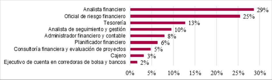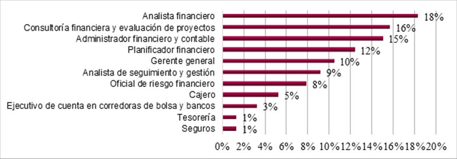 The jobs most in demand by Financial Engineers, according to respondents who work in the corporate sector are: 18% financial analyst, 16% consulting and project evaluation and 15% financial administrators and accountants.