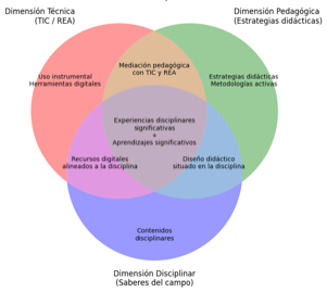 Las dimensiones técnico-pedagógica y disciplinar como vínculos no operan de manera independiente, sino que se potencian mutuamente, es decir, la práctica docente efectiva requiere tanto de estrategias pedagógicas adecuadas como de un manejo sólido del contenido disciplinar, y los REA actúan como un puente que facilita esta integración. Por lo que, las buenas practicas docentes requieren el equilibrio entre el dominio del contenido y el uso de estrategias pedagógicas adecuadas, pertinentes y relevantes para potenciar el aprendizaje de los estudiantes.