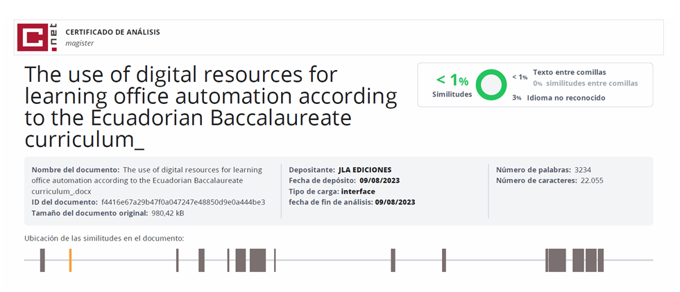 Keywords: Digital resources, office automation, Ecuadorian baccalaureate curriculum, learning, evaluation