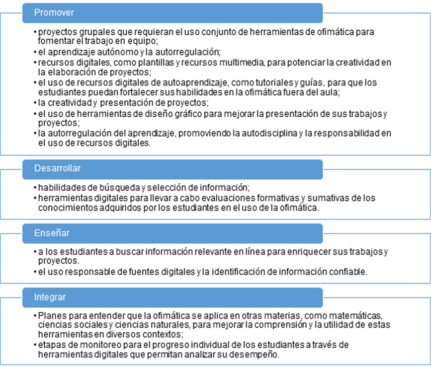 · Promover la incorporación de recursos digitales y herramientas tecnológicas en las clases de ofimática.
