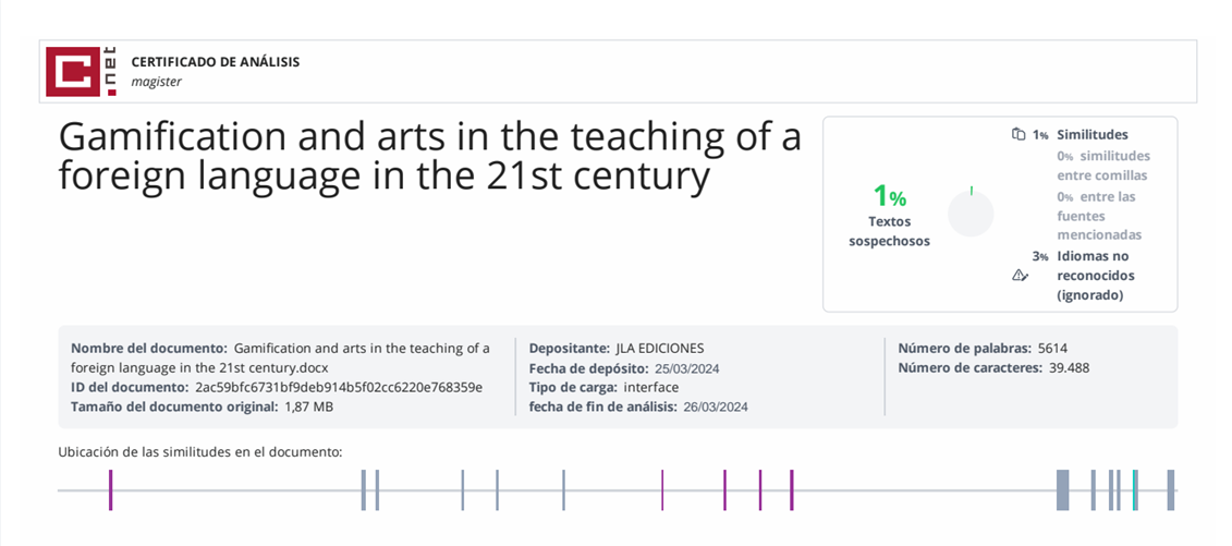 Integrating different forms of art into foreign language teaching enriches learning and promotes a comprehensive educational experience, stimulating the creative process, personal expression, and connecting learners with culture, the essence of their people, and thus the target language. To implement art in the classroom, it is necessary to consider the context and level of the students, as well as select appropriate strategies and resources. Art becomes the catalyst that drives and enhances gamification in the educational sphere, adding magic and charm to the learning experience. Through its multiple forms of expression, art allows students to explore new dimensions, connect with their creativity, and enjoy the process of acquiring knowledge in an enriching and stimulating environment. The use of art in foreign language teaching not only improves the experience but also awakens a passion for learning and develops a true connection with the language and its culture. (Hernando, 2023)