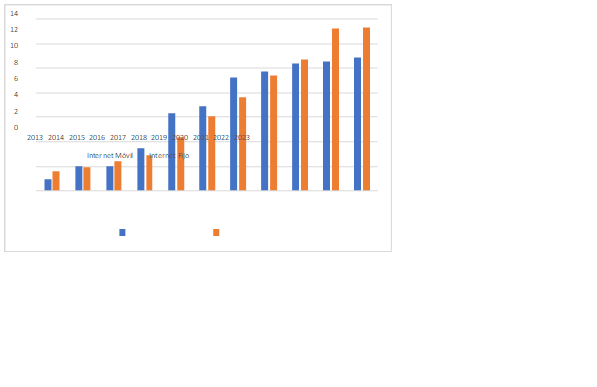 Evolución conectividad a internet móvil y punto fijo en Bolivia
